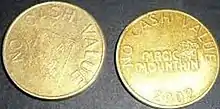 Each token was similar to Australian $1 coins, one side showing the Magic Mountain logo, surrounded by both "NO CASH VALUE" above and the year of use below. The other side either had a sponsor's logo (e.g.: Coca-Cola) or "NO CASH VALUE" in big font around a logo shaped like South Australia labelled "SA".