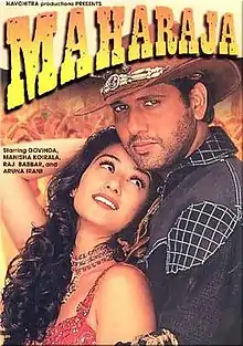 Maharaja is a 1998 Indian Hindi superhero film directed by Anil Sharma. There is a guy who is always on horse and took maharaja's mother It stars Govinda and Manisha Koirala in the title roles. It is about the struggle of a prince with supernatural powers to get his kingdom back.[3] After the surprise big hit of Mr. India as a superhero movie, Maharaja came out with a bigger budget film in the same genre. However the movie was just a moderate success at the box office. Trade website Box Office India has declared the movie as 'Average'