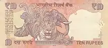 ₹10 | 137 × 63 mm | Orange and violet | Rhinoceros, elephant, tiger | 1996 / 2006 | Current | |||