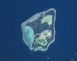 The island formation consists of one high island with a peak elevation of 154 meters (505') and a low island (or motu) that winds along the base of the high island. The formation encloses two hypersaline lagoons called Roto Iti and Roto Rahi. The island also has a lagoon at its edge. All lagoons are connected through narrow channels. The island is home to 299 people (as of Aug. 2007 census).