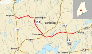 State Route 154 (SR 154) is part of Maine's system of numbered state highways, located in Somerset and Piscataquis counties. It runs from Brighton to Ripley, and it is 20.2 miles (32.5 km) long.