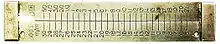 They were made by several European companies and are all similar to the gauge in Figure 1, being brass plates with notches on both edges and round sinks on both sides. The height of a spring is measured by finding the smallest notch on the edge of the gauge into which it will fit. The strength is determined by finding the smallest round sink into which the mainspring barrel (horology) will fit. (The diameter of the barrel is related to the mainspring length and strength, but this method for determining strength only works for springs of standard lengths.)