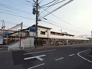 The station consists of a side platform serving a single elevated track. There is no station building, only a shelter on the platform for waiting passengers and an automatic ticket vending machine. A small shed on the platform that housed a ticket window has now become unstaffed. To the south and southwest of the station are the extensive sidings of the Ōita Branch Vehicle Centre, one of JR Kyushu's major rail depots.[2][3]