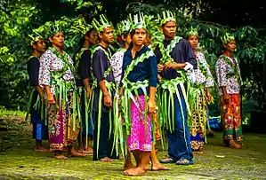 Most indigenous people wore bark costumes decorated with beads. The Orang Asli of West Malaysia still wear clothing of natural materials, often out of tree bark and skirt. Leaf fronds are sometimes crafted into headbands or other ornaments.[3] On the other hand, Siamese community of northern Malaysia, both women and men have traditionally worn attire of Thai origin.
