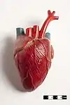 The mammalian heart has four chambers, two upper atria, the receiving chambers, and two lower ventricles, the discharging chambers.[82] The heart has four valves, which separate its chambers and ensures blood flows in the correct direction through the heart (preventing backflow). After gas exchange in the pulmonary capillaries (blood vessels in the lungs), oxygen-rich blood returns to the left atrium via one of the four pulmonary veins. Blood flows nearly continuously back into the atrium, which acts as the receiving chamber, and from here through an opening into the left ventricle. Most blood flows passively into the heart while both the atria and ventricles are relaxed, but toward the end of the ventricular relaxation period, the left atrium will contract, pumping blood into the ventricle. The heart also requires nutrients and oxygen found in blood like other muscles, and is supplied via coronary arteries.[83]