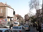 There are no indoor malls on this street;[4] rather, the avenue is lined with dozens of small shops that sell essential consumer goods such as "clothes, food, school supplies, medicine, and limited luxuries" to the Haredi community.[3] There are kosher music stores, kosher pizza shops, home appliance stores, falafel and juice stands,[7] a kosher ice cream parlor,[8] pharmacies, photo shops, a teenage novelty store, Judaica sellers,[9] kosher bakeries, and a shtiebel with continuous minyanim.[10] All food stores carry reliable hechsherim (kashrut certificates) to appeal to the Haredi clientele, which often shops with children in tow.[4] In the weeks before Sukkot, numerous stores vacate their premises and rent their space to etrog dealers,[11] while sidewalk vendors sell etrogs, lulavs, sukkah decorations and pictures of rabbinical figures.[12] As a central Haredi shopping district for both locals and tourists, Malkhei Yisrael Street is also populated by a number of street beggars, some of whom have been working the street for decades.[10]