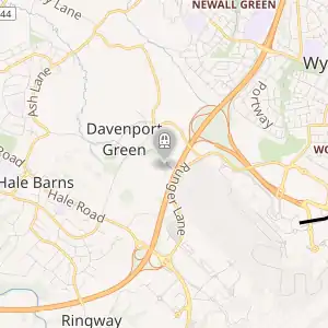 Transport for Greater Manchester has proposed that the Metrolink Airport Line — which currently terminates at Manchester Airport station — be extended via a new "western loop" around Wythenshawe. This proposed tram line which would cross the M56 motorway via the Thorley Lane Bridge, with an HS2 interchange stop at Davenport Green, before looping around via Wythenshawe Hospital. Local politicians have begun lobbying central government for political support for this extension scheme, which is currently unfunded.[12]