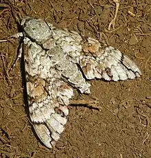 The wingspan is 99–110 mm. It is similar in appearance to several other members of the genus Manduca, but a number of differences distinguish it from Manduca lichenea, to which it most closely compares. There is a great deal of individual variation. The forewings have a greenish tint and prominent black discal streaks.