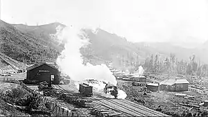 An advert for timber for the station building was placed on 13 December 1901.[7] Dates from 3 July to 30 August 1902 are mentioned for opening goods traffic to Mangaweka and 30 October for inspection of the 9 mi 20 ch (14.9 km) line from Mangaonoho to Mangaweka. New Zealand Railways (NZR) took the line over from the Public Works Department on Monday, 3 November 1902, when the stationmaster was transferred from Ōhingaiti to Mangaweka and the station was noted as having a passenger platform, 84 wagon passing loop, privies, urinals, goods shed 72 ft (22 m) by 42 ft (13 m), loading bank, sheep and cattle yards, water service (one 2,000 gallon vat), coal shed 24 ft (7.3 m) by 16 ft (4.9 m), engine shed 72 ft 6 in (22.10 m) by 21 ft 6 in (6.55 m), with a 59 ft (18 m) long pit, and stationmaster's house. On 1 November 1904 a cart approach and crane were also mentioned and a warehouse crane and stockyard upgrade came in 1913.[5]