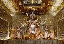 as a small celebration in a shop[1] and has grown into one of Kolkata's largest & biggest Durga Puja celebrations, attended by celebrities, industrialists,politicians and foreign diplomats.[2]