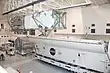 At the SSPF, ISS modules, trusses and solar arrays are prepped and made ready for launch. In this iconic building are two large 100,000 class clean work environment areas.[27] Workers and engineers wear full non-contaminant clothing while working. Modules receive cleaning and polishing, and some areas are temporarily disassembled for the installation of cables, electrical systems and plumbing. Steel truss parts and module panels are assembled together with screws, bolts and connectors, some with insulation. In another area, shipments of spare materials are available for installation. International Standard Payload Rack frames are assembled and welded together, allowing the installation of instruments, machines and science experiment boxes to be fitted. Once racks are fully assembled, they are hoisted by a special manually operated robotic crane and carefully maneuvered into place inside the space station modules. Each rack weighs from 700 to 1,100 kg, and connect inside the module on special mounts with screws and latches.[28]