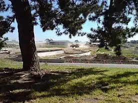 The estimated cost of the project was $50 million.[1] Construction began in June 2008[5] with completion expected in late 2011.[4][6] However, due to other work on the Auckland network taking priority, completion was re-scheduled for April 2012.[7] Station works were reported essentially finished by October 2011,[8] and the line opened on 15 April 2012.[9]