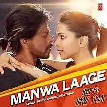 "Manwa Laage" (transl. My heart feels this) is a romantic Hindi song from the 2014 Bollywood film, Happy New Year. Composed by Vishal–Shekhar, the song is sung by Shreya Ghoshal and Arijit Singh, with lyrics penned by Irshad Kamil.[1] The music video of the track features actors Shahrukh Khan and Deepika Padukone.[2]