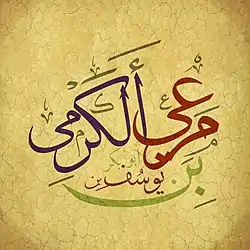 ![]() Name of Mar'i al-Karmi in arabic calligraphy | |