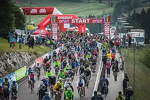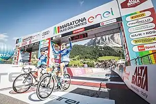 The Maratona dles Dolomites (Ladin for "Dolomites Marathon"; Italian: Maratona delle Dolomiti), is an annual single-day road bicycle race covering seven mountain passes in the Dolomites. Open to amateur cyclists, the Maratona—with 9,000 riders from over 70 nations—is one of the biggest Italian Granfondo bicycle races.[1] National Geographic described it as "one of the biggest, most passionate, and most chaotic bike races on Earth."[2]