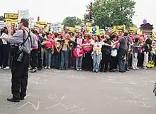 The March for Women's Lives (2004) was a protest demonstration held on April 25, 2004 at the National Mall in Washington, D. C. There was approximately 1.3 million participants.[1] The demonstration was led by seven groups; National Organization for Women, American Civil Liberties Union, Black Women’s Health Imperative, Feminist Majority, NARAL Pro Choice America, National Latina Institute for Reproductive Health, and Planned Parenthood Federation of America.[2] The march was intended to address topics such as abortion rights, reproductive health care, women's rights, and others.[2][3]
