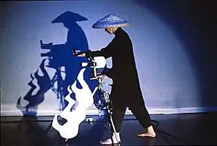 Margaret Fisher (born 1948) is an American performance and media artist best known for interdisciplinary works that pair gestural choreography to experimental visual theater characterized by a cartoon aesthetic with wide-ranging cultural references.[1][2][3] She emerged amid a 1970s Bay Area experimental performance scene that included artists such as Lynn Hershman Leeson, George Coates, Bill Irwin and Winston Tong, and co-founded the intermedia production group MA FISH CO and the alternative theater Cat's Paw Palace in Berkeley.[4][5][6][7] Fisher's work has been featured at the Venice Biennale,[8] Dance Theatre Workshop, PS1 and The Kitchen in New York,[9][10][11] SFMOMA,[3][12] Image Forum (Tokyo), and the Musée d'art contemporain de Montréal Mue-danse Festival;[13] it has been reviewed in The New York Times,[14] The Village Voice,[15] Los Angeles Times,[7] La Repubblica,[16] Artweek,[17] San Francisco Chronicle,[18] and Dance Magazine.[19] Critic Rita Felciano describes Fisher's approach as one of "artful intellect" and her multimedia pieces as "demanding puzzles, tightly structured and pervaded by a stillness and internal quiet."[3] In addition to producing art, Fisher is an independent researcher and author of numerous books on twentieth-century performance, radio, film and poetry.[20][21][22] She lives and works in Emeryville, California and is married to composer Robert Hughes.[3]
