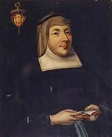 Margherita was elected Abbess of the monastery of Sant'Alessandro nine times, dying there on 13 April 1643 aged 75. At first, she was buried in the monastery grounds like the other nuns, until 14 December 1853, when Charles III, Duke of Parma ordered to transfer her remains to the Sanctuary of Santa Maria della Steccata and to bury her remains in the necropolis of the Farnese and Bourbon dynasties.[3][17] The Margherita's tomb is located next to her father's; on the tombstone are carved the coat of arms of the House of Farnese and an epitaph with a summary of her life.[14]