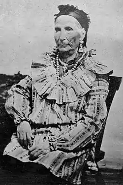 Her great success developed the local economy around moccasins and snowshoe production. By 1879, sixty of the seventy-six families in Lorette were employed in needlework, producing over 30,000 moccasins annually.[2] The Wendake community became established for their numerous handcrafted products while preserving their traditional techniques and knowledge.[3][4]