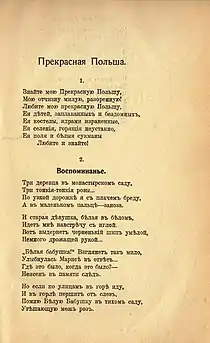 First published works by Maria Moravskaya had deserved positive references from literary men such as Vladislav Khodasevich, Igor Severyanin, Sasha Chorny. Anna Akhmatova, whose poems critics compared with Moravskaya's poems, had recognized her as a "fellow-worker"[transl.note 2] and later several times gifts owns books to her.[14] Gippius in her letter to Chukovsky described Moravskaya as "extremely talented person".[2] And Maria Moravskaya was getting especial support from Voloshin who was of a high opinion about her creative perspectives and predicting role of "second Cherubina de Gabriak".[4] And Cherubina herself (her real name is Elisaveta Dmitrieva) recognized young Polish as her creative successor and 18 January 1910 she wrote to Voloshin: