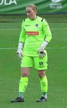 She began her career with local club Mariño (Irun),[1] moving to Real Sociedad in 2014 at the age of 18, where she soon became the regular starting goalkeeper ahead of Cris Cornejo.[2] She transferred to Athletic in the summer of 2021, along with club teammate Itxaso Uriarte.[3][4]
