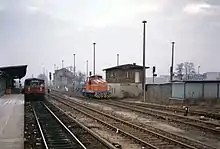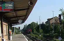 Berlin-Marienfelde station is a station and a freight yard in Berlin, Germany. It is located on the Berlin–Dresden railway line in the locality of Marienfelde, part of the Tempelhof-Schöneberg borough. The station is part of the Berlin S-Bahn rapid transit network.