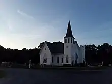 Red Bank Baptist Church in Marionville at dusk, July 2018