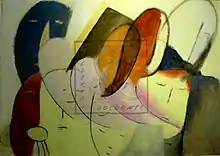 Mori became involved with the Futurist movement, joining the group led by Filippo Tommaso Marinetti in 1931. She was the only woman to contribute to The Futurist Cookbook in 1932.[4] She was invited to the first National Futurist Exhibition in Rome in 1932, and soon after left Turin to return to live in Florence with her husband. In 1934 and 1936 she was invited to the Venice Biennale. She became very involved with Aeropittura (Aeropainting), winning a Silver Medal for a triptych she exhibited in a 1932 Futurist Art Prize at Galleria Bardi in Rome. In 1937 her work was included in the exhibition Les femmes artistes d’Europe at the Galerie nationale du Jeu de Paume in paris, later to travel to the Metropolitan Museum of Art in New York.[5] Towards the late 1930s, Mori became disenfranchised with the Futurist movement due to its enthusiasm for fascism – a position that made her the subject of heavy criticism from her contemporaries. In 1938 she vehemently protested against the publication of the Manifesto of Race. She would later give hospitality to Rita Levi Montalcini and her brother Gino Levi Montalcini, who were both affected by Italian racial laws from 1938 to 1943. In 1943, at the eve of the outbreak of Civil War, Mario Mori died.