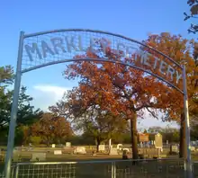 The Markley cemetery [5] was begun in 1888 next to the old Plum Grove School. The first burial there was of M.C. Norfleet. After ten years, the burial ground was no longer being cared for, so in 1890, a group of citizens from the surrounding rural community including J. C. Calvin, J.W. Cox, R.E. Currie, S.G. Dean, Nelson Owen, M.A. Stewart, Andy and Ike Tinney, J.M. Wallace, and W.M. Watson, organized an annual "Graveyard Working Day".[6] The working day was scheduled for the first Saturday in May. During this time, residents from the surrounding area came by wagon and horseback. After cleaning the area, the practice of placing flowers on the graves was performed. In 1925, the observation was changed to the first Sunday in May. Today, there is a cemetery association that provides care for the cemetery yet Decoration Day continues as an annual social event bringing dozens of people from far away to pay respect to those buried there. Some of the individuals honored each year include the graves of thirteen Civil War veterans: John F. Bussey, J.C. Butler, Jessie Byrd, R.E. Currie, George J. Lucas, J.D. Mankins, J.L. McDaniel, J.L. Norfleet, Nelson Owen, J.C. Stanley, James Stinnett, Cates Thompson, and David White.