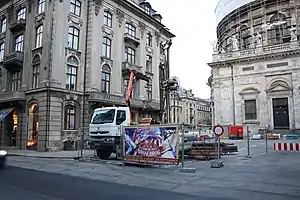 Marmorkirken (lit. Marble Church) is an underground Copenhagen Metro station located at the Marble Church, facing Bredgade, in downtown Copenhagen, Denmark. The station is on the City Circle Line (M3 and M4 lines), between Østerport and Kongens Nytorv, and is in fare zone 1. Marmorkirken is unique in its design in that it is the only station on the Copenhagen Metro where the platforms for the two tracks are at different levels, unlike the island platform design used at every other station. This design was chosen to avoid excavating underneath, and risk compromising, the foundations of the Marble Church. With the lower platform at 30 meters beneath street level, it is also the deepest station of all stations on the Copenhagen Metro.[1]
