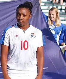 ![]() Cox representing Panama against Trinidad and Tobago at the 2018 CONCACAF Women's Championship on 4 October 2018. | |||
