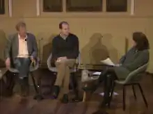 ![]() Bolkestein (center) during a panel discussion in 2018 | |