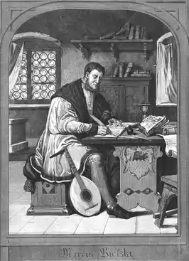 Marcin Bielski (or Wolski; 1495 – 18 December 1575) was a Polish soldier, historian, chronicler, renaissance satirical poet, writer and translator. His son, Joachim Bielski, royal secretary to king Sigismund III Vasa, was also a historian and poet. He was born of noble parentage on the patrimonial estate of Biała (whence the family name), Pajęczno County, in the Polish province of Sieradz. His alternate surname Wolski derives from his estate at Wola. One of two Polish writers of the same name, he was the first to use the Polish language, hence his designation as the father of Polish prose.