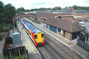 Martins Heron railway station serves commuters travelling to London Waterloo and Reading, Berkshire. The railway station is small but is manned during the morning and is equipped with CCTV. The station is situated right next to a Tesco supermarket, and indeed was built by the supermarket chain, as a precondition of the supermarket being built.