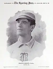 Martin Bergen (October 25, 1871 – January 19, 1900) was an American professional baseball player who murdered his family before committing suicide. From 1896 to 1899 he played in 344 games with the Boston Beaneaters of Major League Baseball, 337 of them as their catcher. Bergen helped the Beaneaters to National League pennants in 1897 and 1898, as well as a second-place finish in 1899.