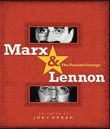Marx & Lennon: The Parallel Sayings is an anthology of 400 humorous quotes from John Lennon and Groucho Marx on a variety of themes. Quotations are thematically collected in such a way that the top section of a page contains Marx' quotes, and the bottom section contains Lennon's. The book is edited by Joey Green and includes an introduction by Arthur Marx and a foreword by Yoko Ono. Including the index, it is 254 pages long.