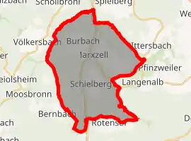 Marxzell is an amalgamation of seven subdivisions: Marxzell in the Albtal and Burbach; Pfaffenrot and Schielberg on the surrounding heights of the Black Forest; and Weiler Fischweier, Steinhäusle and Frauenalb in the valley.