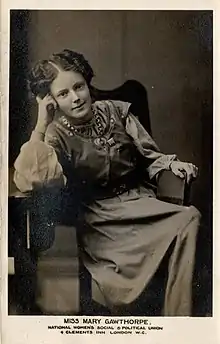 Mary Eleanor Gawthorpe (12 January 1881 – 12 March 1973)[1] was an English suffragette, socialist, trade unionist and editor.[2] She was described by Rebecca West as "a merry militant saint".[3]