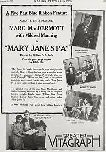 Mary Jane's Pa is a 1917 American silent drama film directed by Charles Brabin and William P.S. Earle and starring Marc McDermott, Mildred Manning and Eulalie Jensen.[1]