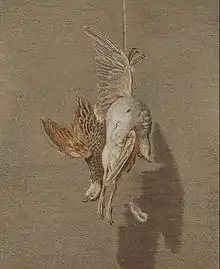 Four years before her death in 1845, Mary's works were still exhibited in London. She worked with stitches of different lengths on a fabric made especially for her in Leicester, and had coarse linen tammy cloth prepared for her as well. Her long and short stitches looked like brush strokes, with silk for highlights. She inspired many amateurs in later years to copy her needlework techniques on a smaller scale.[11] Mary embroidered her last piece when she was seventy-eight, although she lived to be ninety and worked as a school mistress until a year before her death. She never married and, according to the Greater Wigston Historical Society, was the last person in Leicester to use a Sedan chair. In 1845, during her annual visit to her Exhibition in London, Mary Linwood, by then regarded as the most celebrated needlewoman of her age, caught the flu and died. She was buried in St Margaret's Church, Leicester, a church she regularly attended.[3] Her entire collection was dispersed at Christie's Auction House, after both the British Museum and House of Lords had earlier rejected her offer to donate her collection,[4] the auctioned pieces were sold for sums far below those at which they had been valued a few years previously.[11]