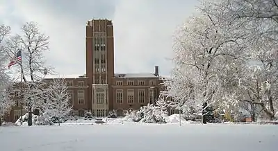 Mary Reed Hall is located on the University of Denver campus in Denver, Colorado southwest of University Hall. It was built in 1932 as a new library to replace the Andrew S. Carnegie library.[1] The building, named after Mary D. Reed, was first used in January 1933. When Penrose Library (which is now Anderson Academic Commons) was built in 1972, the building was decommissioned. The Mary Reed Building now houses administrative offices, including those of the chancellor and provost. The hall's main architectural feature of its central tower has become an iconic image for the university, its likeness appearing on stationery, graduation announcements, class rings, and other memorabilia.