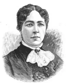 Mary Torrans Lathrap née, Torrans; (pen name, Lena; April 25, 1838 - January 3, 1895), known as "The Daniel Webster of Prohibition", was a 19th-century American poet, preacher, suffragist, and temperance reformer. For 20 years, she was identified with the progressive women of Michigan who had temperance, purity, and prohibition as their watchwords, and the white ribbon as their badge.[1] A licensed preacher for the Methodist Episcopal Church (1871), she served as president of Michigan's Woman's Christian Temperance Union (1882), co-founded the state's suffrage organization (1870), and worked on the amendment campaign (1874).[2] Lathrap died in 1895.