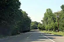 Construction on the Charlotte HallOraville portion of MD 6 began in 1926.[8] The highway was constructed in 1-mile (1.6 km) segments in 1927 and 1928.[9][10] MD 6 was extended east through Huntersville to Lock Swamp Creek in 1930.[11] The state highway was extended to Persimmon Creek in 1933 and to Delabrooke Road north of Oraville in 1934.[12][13] The final section of MD 6 was completed from Delabrooke Road south to MD 235 in Oraville in 1940.[14] The first improvement project on MD 6 was between Doncaster and Hilltop when the gravel road was rebuilt and received a 20-foot (6.1 m) wide bituminous surface.[14] In 1949, the state highway was relocated and a new bridge was constructed near Port Tobacco, replacing a dangerous curve and one-way bridge.[15] MD 6 was widened and resurfaced with bituminous concrete through downtown La Plata in 1951.[16] In 1955 and 1956, MD 6 from US 301 west to McConchie was reconstructed as the westbound direction of an ultimate divided highway that was proposed.[17] Aside from minor improvements, there have been no significant changes in MD 6, such as the construction of a divided highway west of La Plata, since the 1950s.