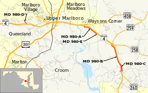 - MD 980D is the designation for the 0.27-mile (0.43 km) segment of Ritchie Marlboro Road from the road's interchange with MD 4 (Pennsylvania Avenue) to the intersection of Ritchie Marlboro Road and Old Marlboro Pike west of Upper Marlboro in Prince George's County.[1][5]