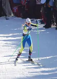 Maryna Mykolayivna Antsybor (Ukrainian: Марина Миколаївна Анцибор, born 10 October 1987, in Konotop, Ukrainian SSR[1]) is a Ukrainian cross country skier who has competed internationally since 2005. She represented Ukraine at the 2010, 2014, and 2018 Winter Olympics. She won a gold and a bronze medal at the 2013 Winter Universiade as well as a silver medal at the 2011 Winter Universiade. . She competed at the 2022 Winter Olympics, in Women's 10 kilometre classical, Women's 30 kilometre freestyle, Women's 15 kilometre skiathlon, Women's sprint, and Women's 4 × 5 kilometre relay.[2]