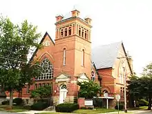 The Presbyterian Church was organized in the house of Stephen McClain on September 9, 1829. In 1866, a movement was started to construct a new church building; a new building was finally dedicated in 1870, located at the corner of Center and West Streets. The Congregational Church organized in 1864, with a building constructed on the northeast corner of West and South Street.[35]