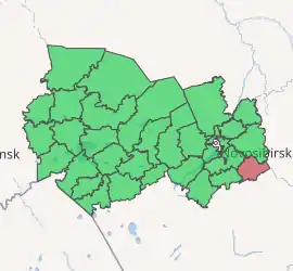 Maslyaninsky District (Russian: Масля́нинский райо́н) is an administrative[1] and municipal[6] district (raion), one of the thirty in Novosibirsk Oblast, Russia. It is located in the east of the oblast. The area of the district is 3,453 square kilometers (1,333 sq mi). Its administrative center is the urban locality (a work settlement) of Maslyanino.[1] Population: 24,438 (2010 Census);[3] 27,196 (2002 Census);[8] 26,421 (1989 Census).[9] The population of Maslyanino accounts for 53.6% of the district's total population.[3]
