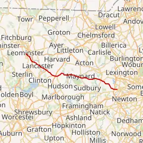 | Worcester | Leominster | 0.00 | 0.00 | Western terminus | |