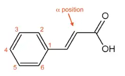 The identification of suitable matrix compounds is determined to some extent by trial and error, but they are based on some specific molecular design considerations. They are of a fairly low molecular weight (to allow easy vaporization), but are large enough (with a low enough vapor pressure) not to evaporate during sample preparation or while standing in the mass spectrometer. They are often acidic, therefore act as a proton source to encourage ionization of the analyte. Basic matrices have also been reported.[16] They have a strong optical absorption in either the UV or IR range,[17] so that they rapidly and efficiently absorb the laser irradiation. This efficiency is commonly associated with chemical structures incorporating several conjugated double bonds, as seen in the structure of cinnamic acid. They are functionalized with polar groups, allowing their use in aqueous solutions. They typically contain a chromophore.