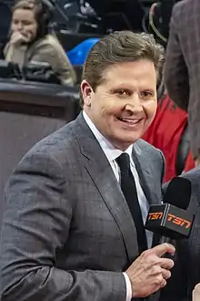 ![]() Devlin at Game 2 of the 2019 NBA Finals | |